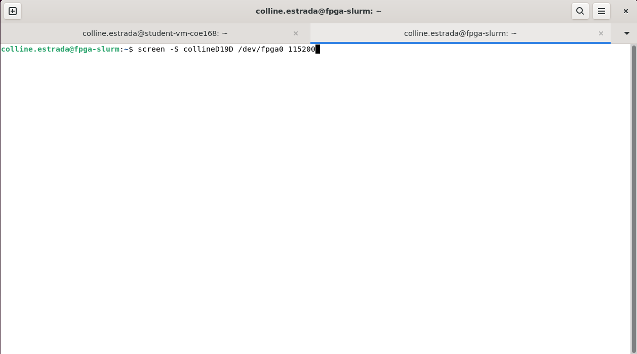 2. To access the serial console, run the screen command on the FPGA server (10.158.1.167) :