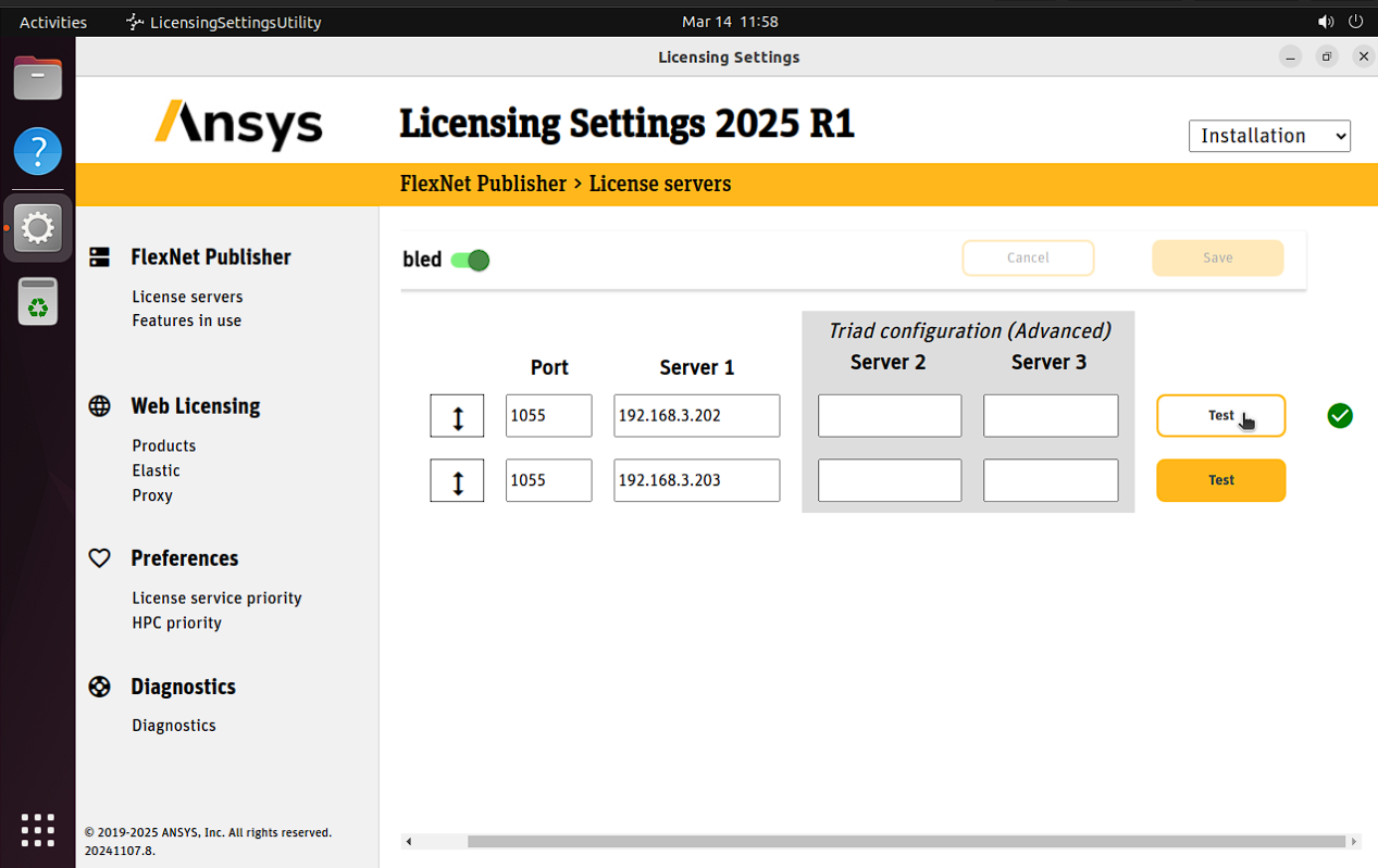 To check if the VM is successfully connected to the License Server, open the Ansys License Manager shortcut. You may test any of the two.